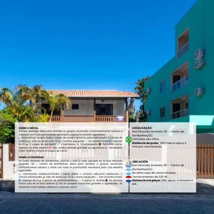 As Casas Verde e de Tijolos podem ser alugadas juntas, oferecendo uma estadia ideal para grupos grandes de até 12 pessoas (adultos e crianças) em Bombinhas.