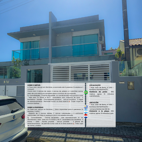 Localizada na Rua João de Barro – Casa 02, em um bairro tranquilo e seguro de Bombas, a propriedade oferece fácil acesso à praia e às principais atrações da região.