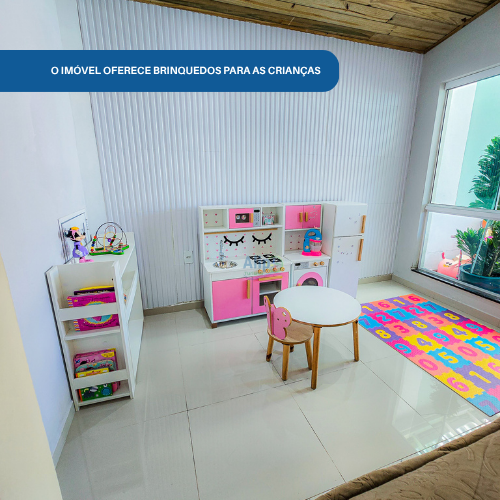Ideal para famílias com crianças: o imóvel oferece livros, brinquedos infantis e espaço de jogos, garantindo diversão e conforto para todas as idades.