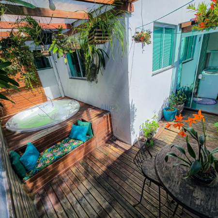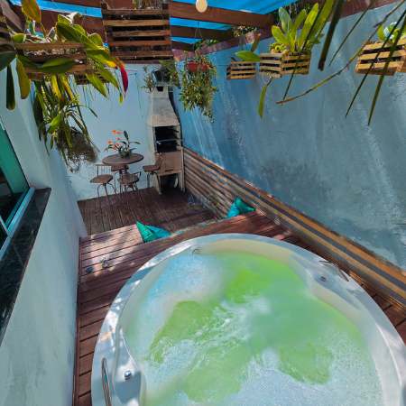 • Área externa privativa com churrasqueira, mesa ao ar livre e jacuzzi aquecida para 4 pessoas, disponível o ano todo;