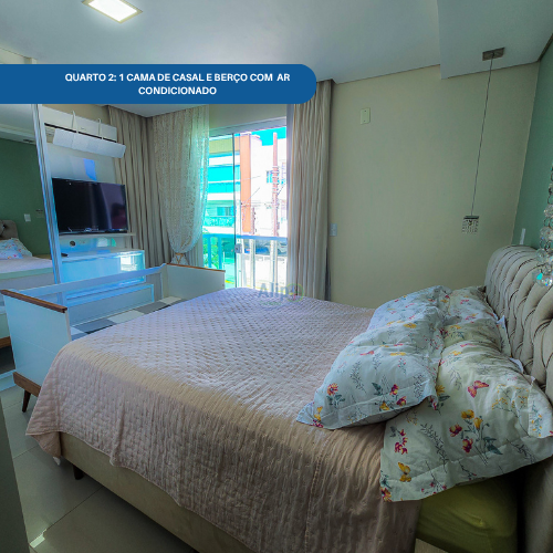 • 2 dormitórios confortáveis, com roupas de cama e cortinas blackout;