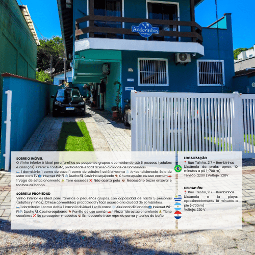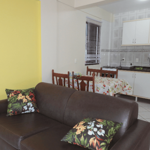 O apartamento Térreo Amarelo é uma ótima opção para quem busca conforto e praticidade durante a estadia em Bombinhas. Acomoda até 5 pessoas e conta com ar-condicionado, cozinha equipada e áreas comuns bem estruturadas.