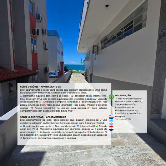 Loft ideal para casais que buscam praticidade, conforto e excelente localização em Bombinhas. Acomoda até 2 adultos e 1 menor, sendo perfeito para quem deseja dias tranquilos pertinho do mar.