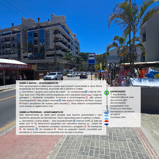 Loft ideal para casais que buscam praticidade, conforto e excelente localização em Bombinhas. Acomoda até 2 adultos e 1 menor, sendo perfeito para quem deseja dias tranquilos pertinho do mar.