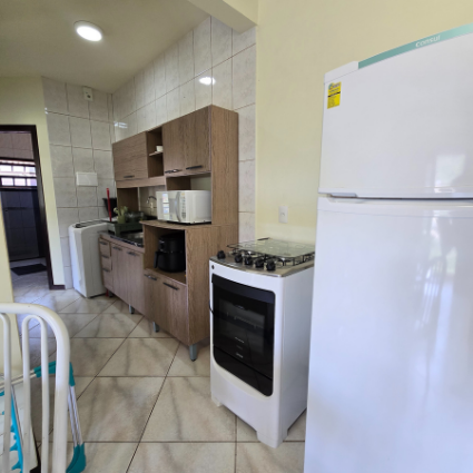 Cada unidade possui cozinha completa, sala de estar, churrasqueira privativa e máquina de lavar, garantindo praticidade e comodidade durante toda a estadia.