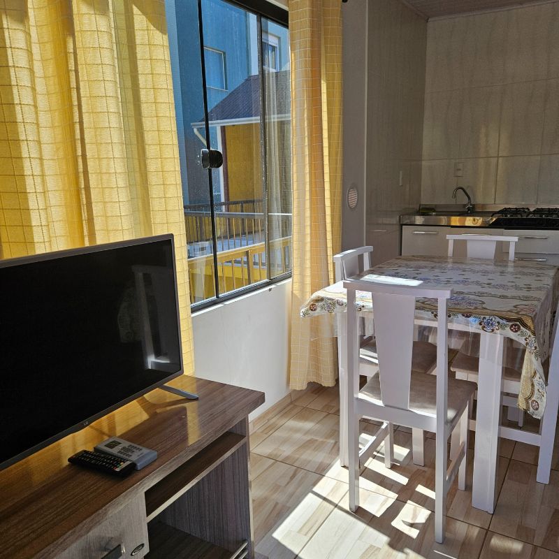 Descubra o conforto do Apto 04, ideal para casais ou pequenas famílias que buscam praticidade e comodidade em Bombinhas. O apartamento conta com 2 suítes com ar-condicionado, cozinha equipada, sala com TV, churrasqueira privativa, lavanderia com máquina de lavar e Wi-Fi de alta velocidade. Estacionamento para 1 veículo incluso. Um espaço funcional e acolhedor para aproveitar ao máximo sua estadia.