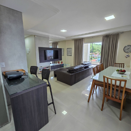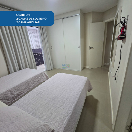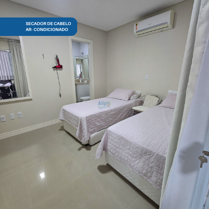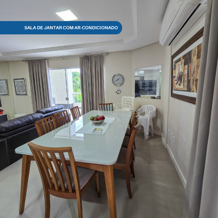 - Comodidades: Apartamento, Ar condicionado na sala, Ar condicionado no quarto, Bairro de Bombas, Banheiro no quarto, Banheiro Social, Beliche, Cama Casal, Cozinha Completa, Ducha Higiênica, Estacionamento Coberto, Internet, Microondas, Ótima Localização, Perto de Pontos Turísticos, Pet friendly, Smart TV, Tranquilidade e Natureza, TV comum, Wi-Fi