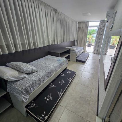 - Comodidades: Apartamento, Ar condicionado no quarto, Bairro de Bombas, Banheiro Social, Beliche, Cama Casal, Cama Solteiro, Colchão Adicional Solteiro, Cozinha Completa, Estacionamento Descoberto, Internet, Máquina de Lavar, Microondas, Ótima Localização, Perto de Pontos Turísticos, Roupa de Cama Básica, Smart TV, Sofá Cama, Sofá cama, Tranquilidade e Natureza, TV comum, Varanda, Ventilador, Wi-Fi